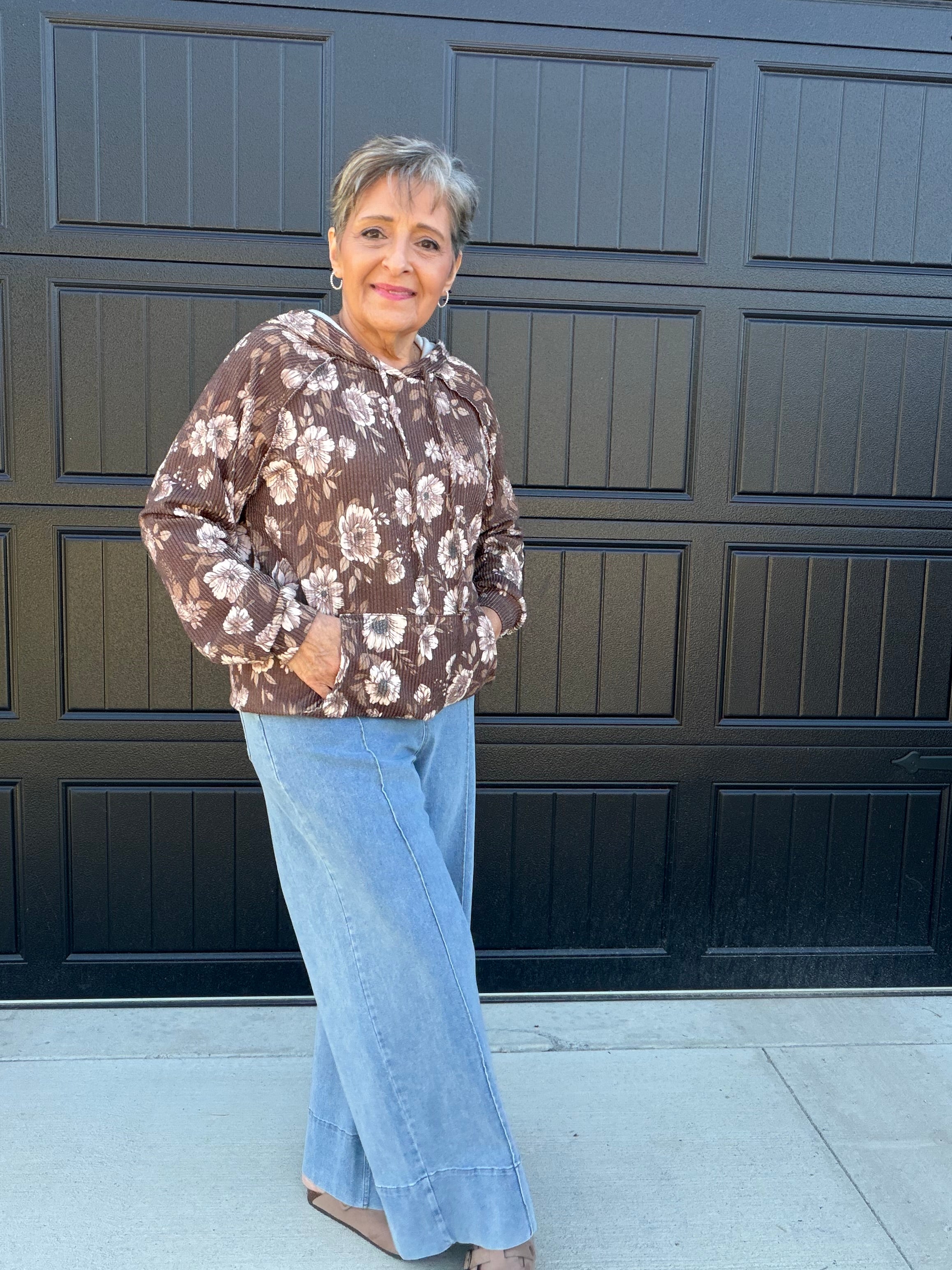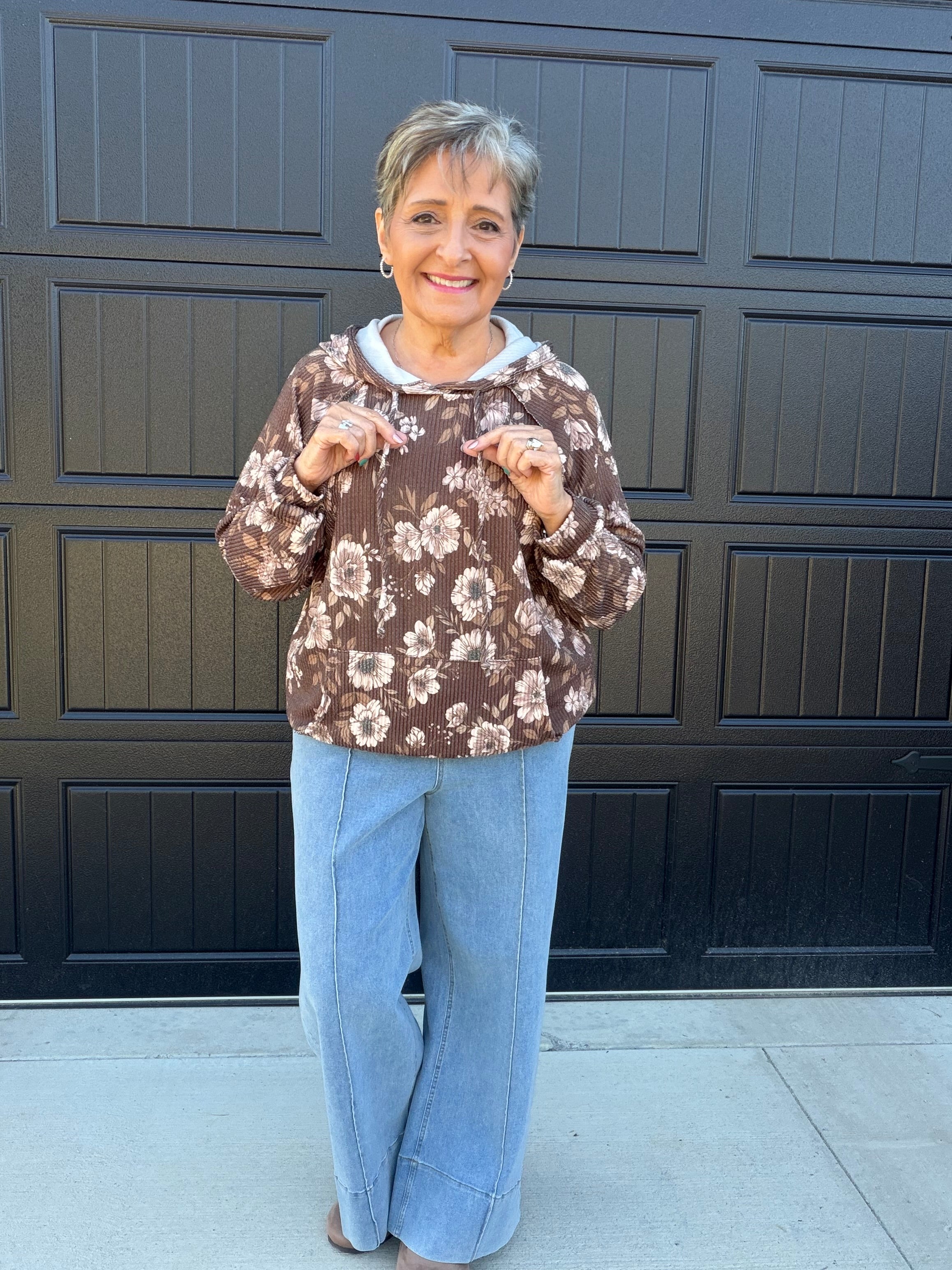 This top is a urban ribbed material top. SO cozy and soft and the material is amazing. Relaxed Fit Top and Fitting Oversized!