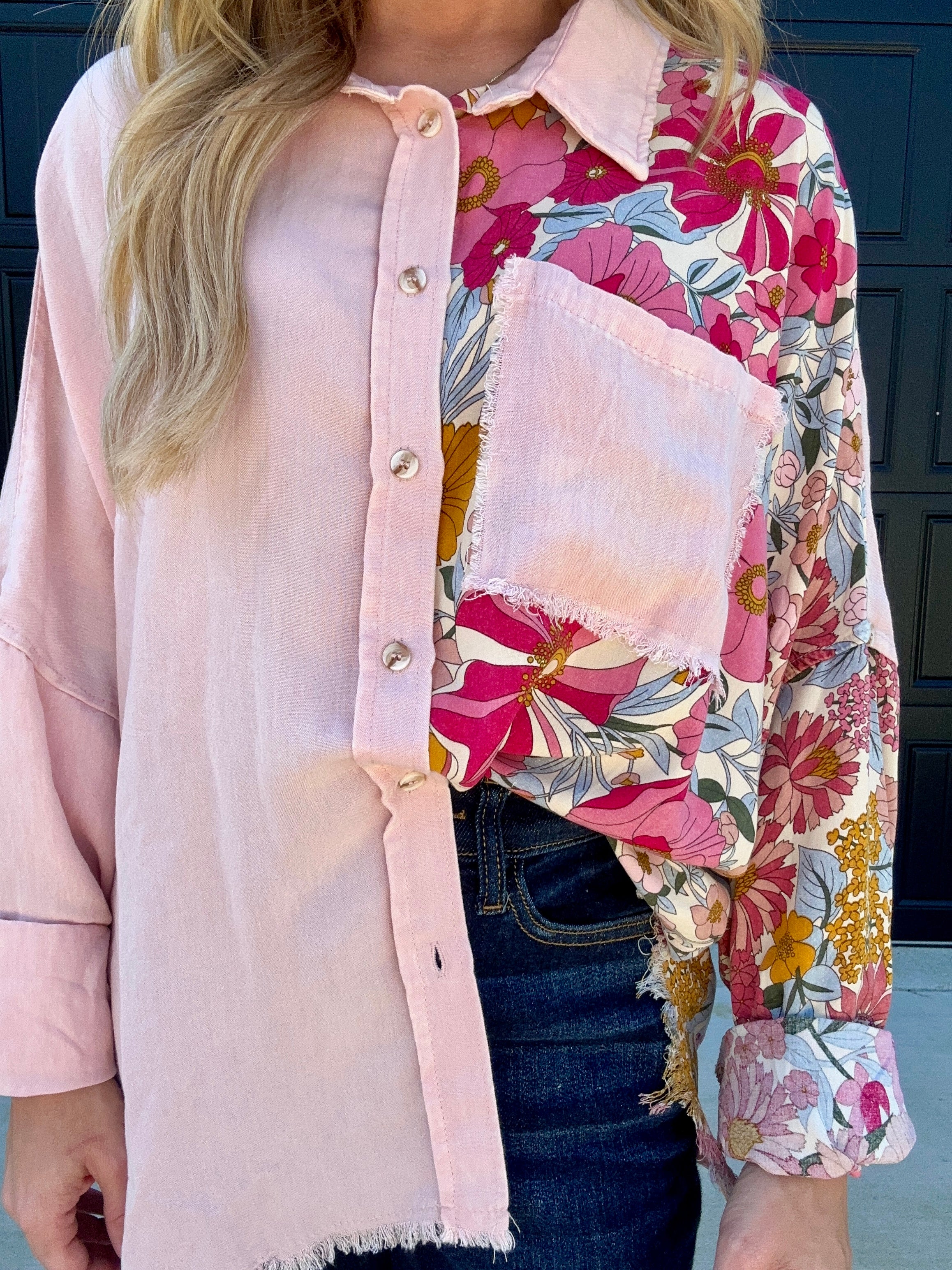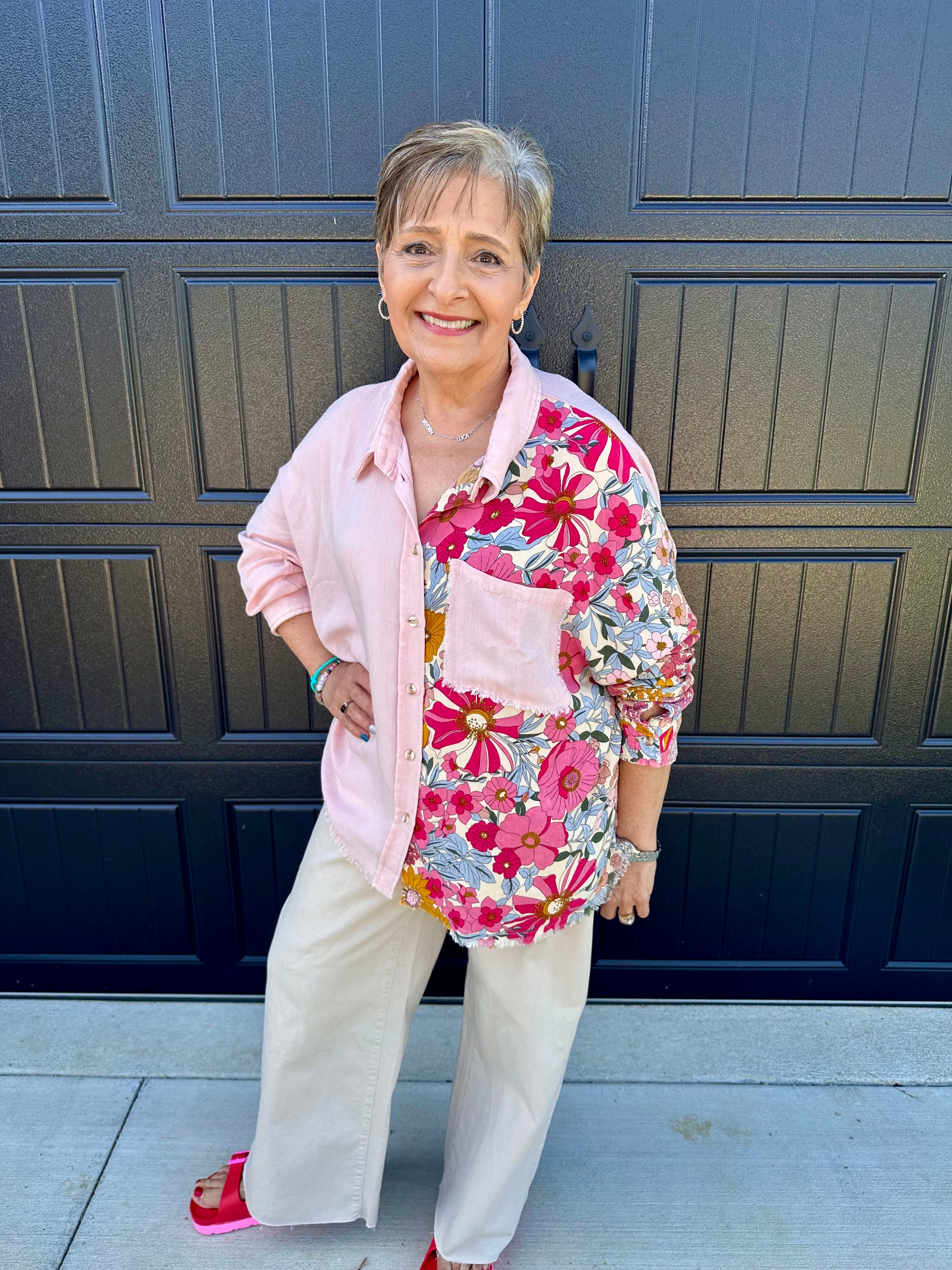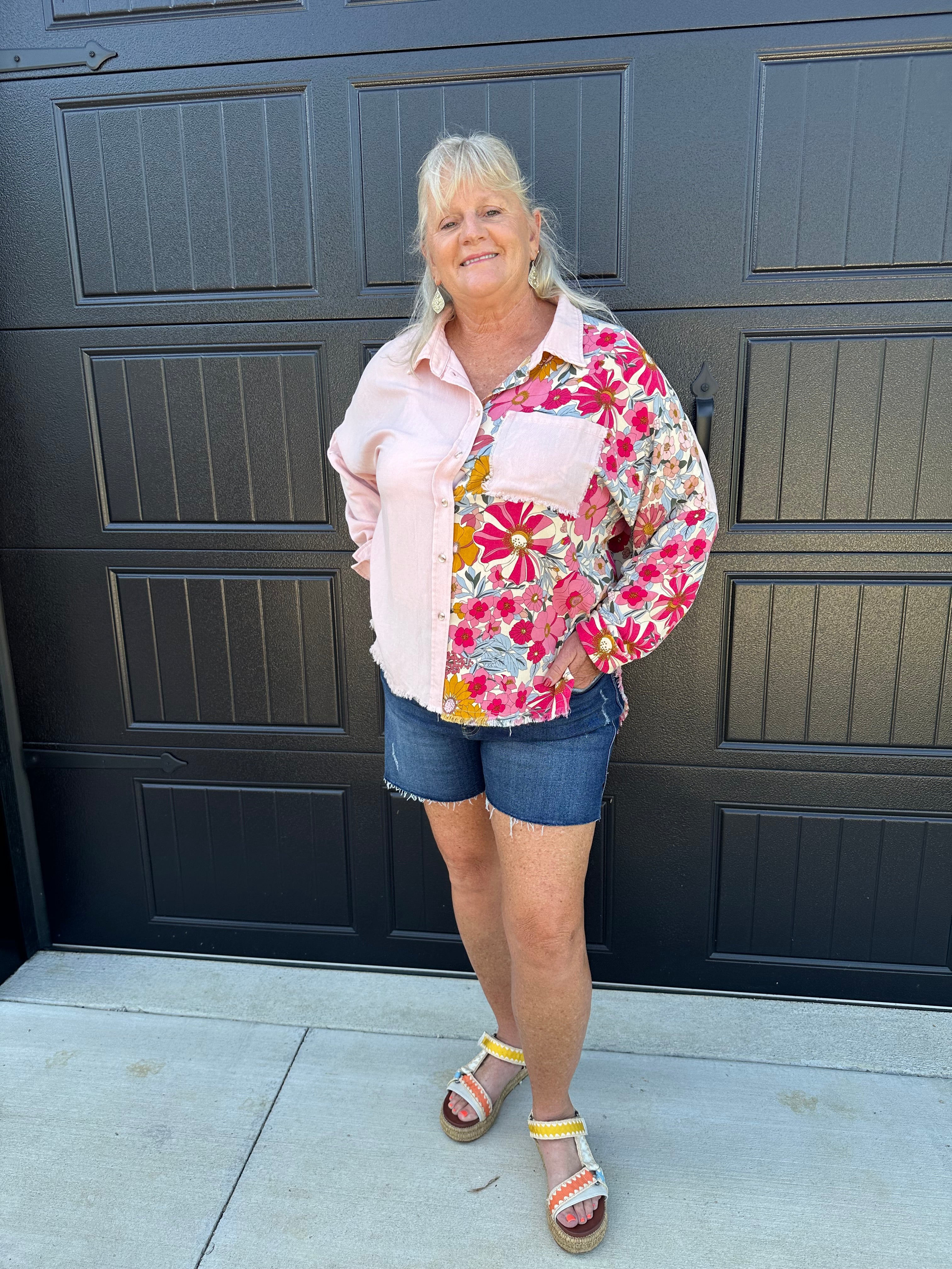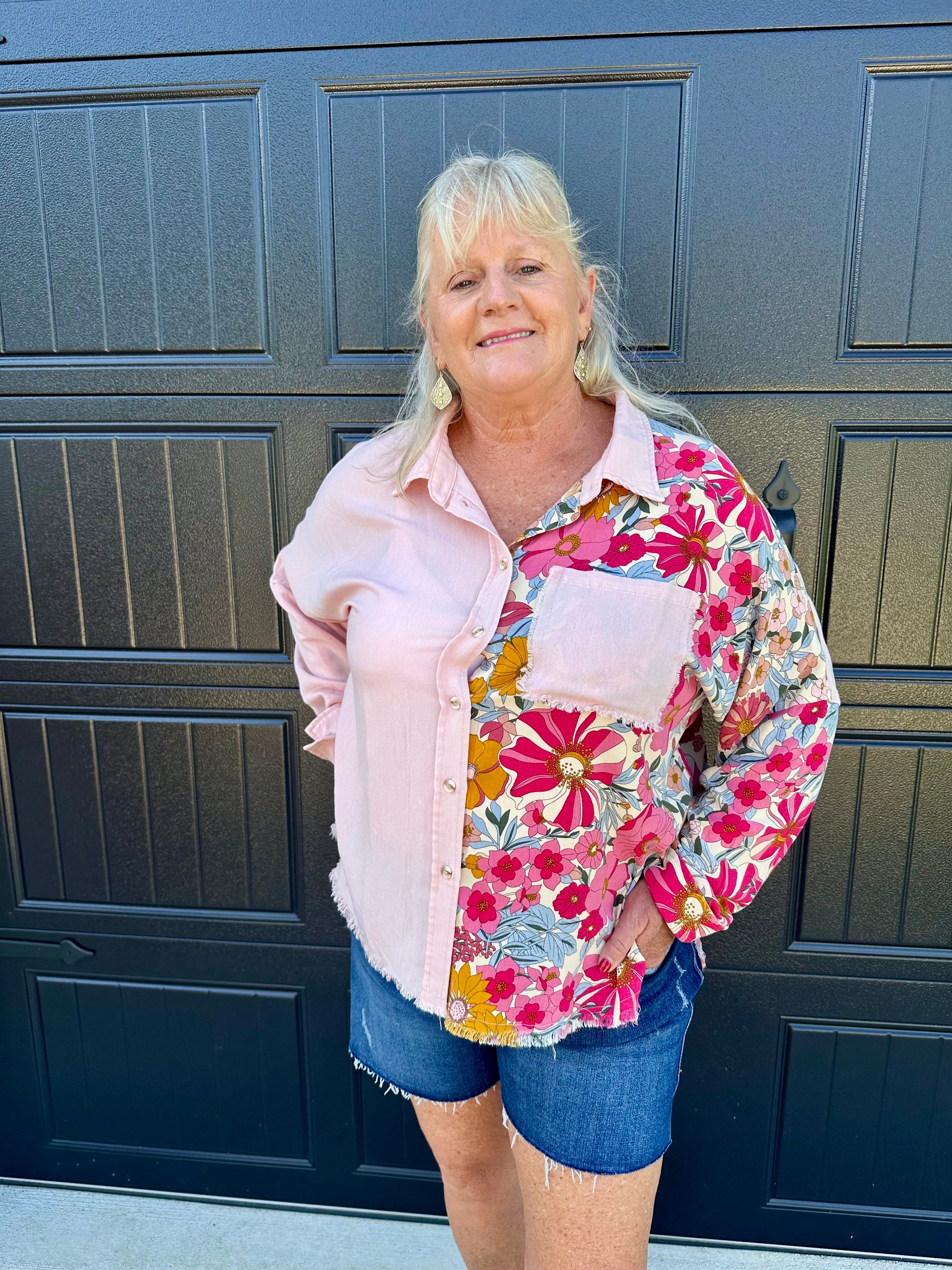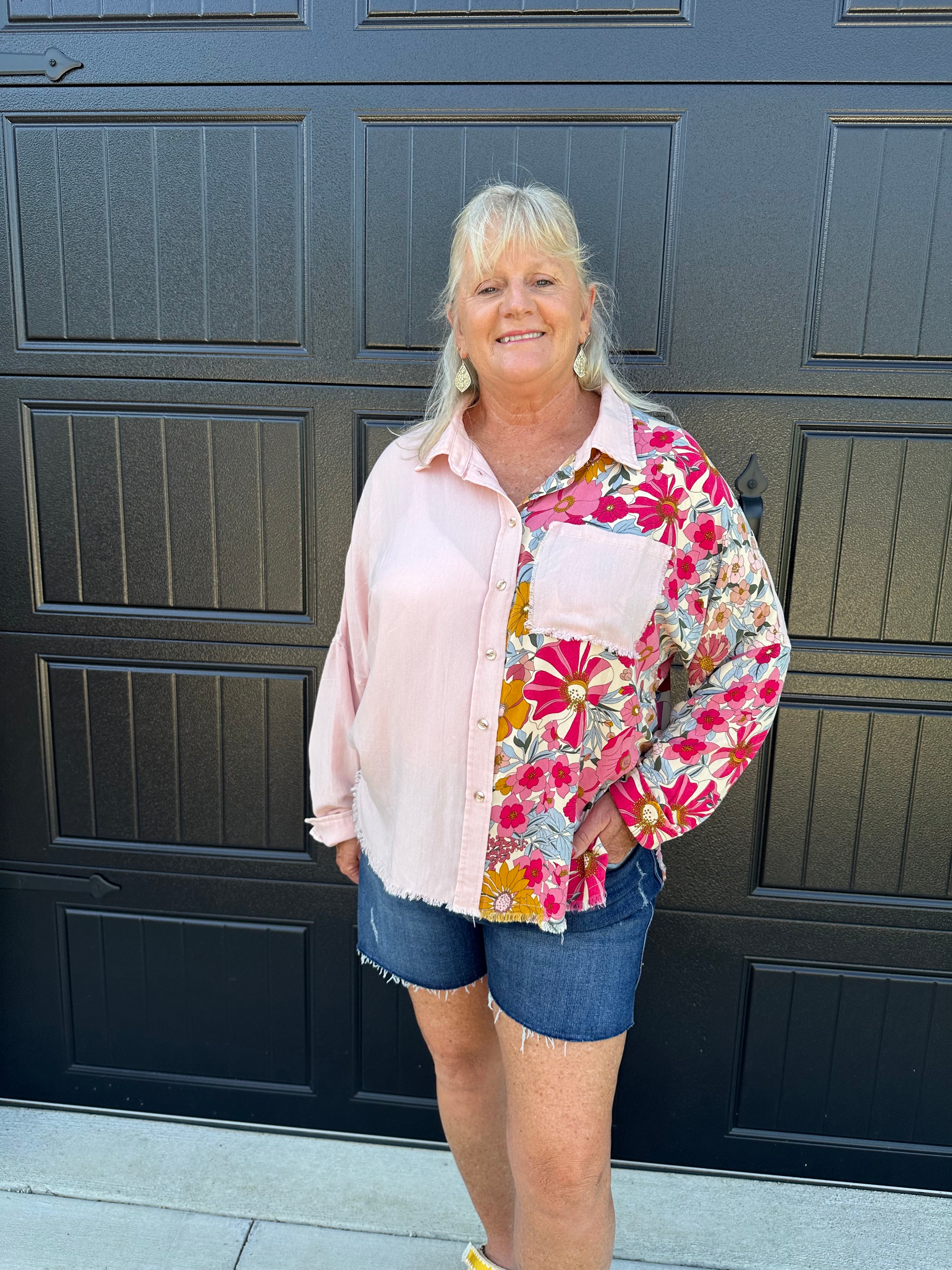 Blush Floral Button Top