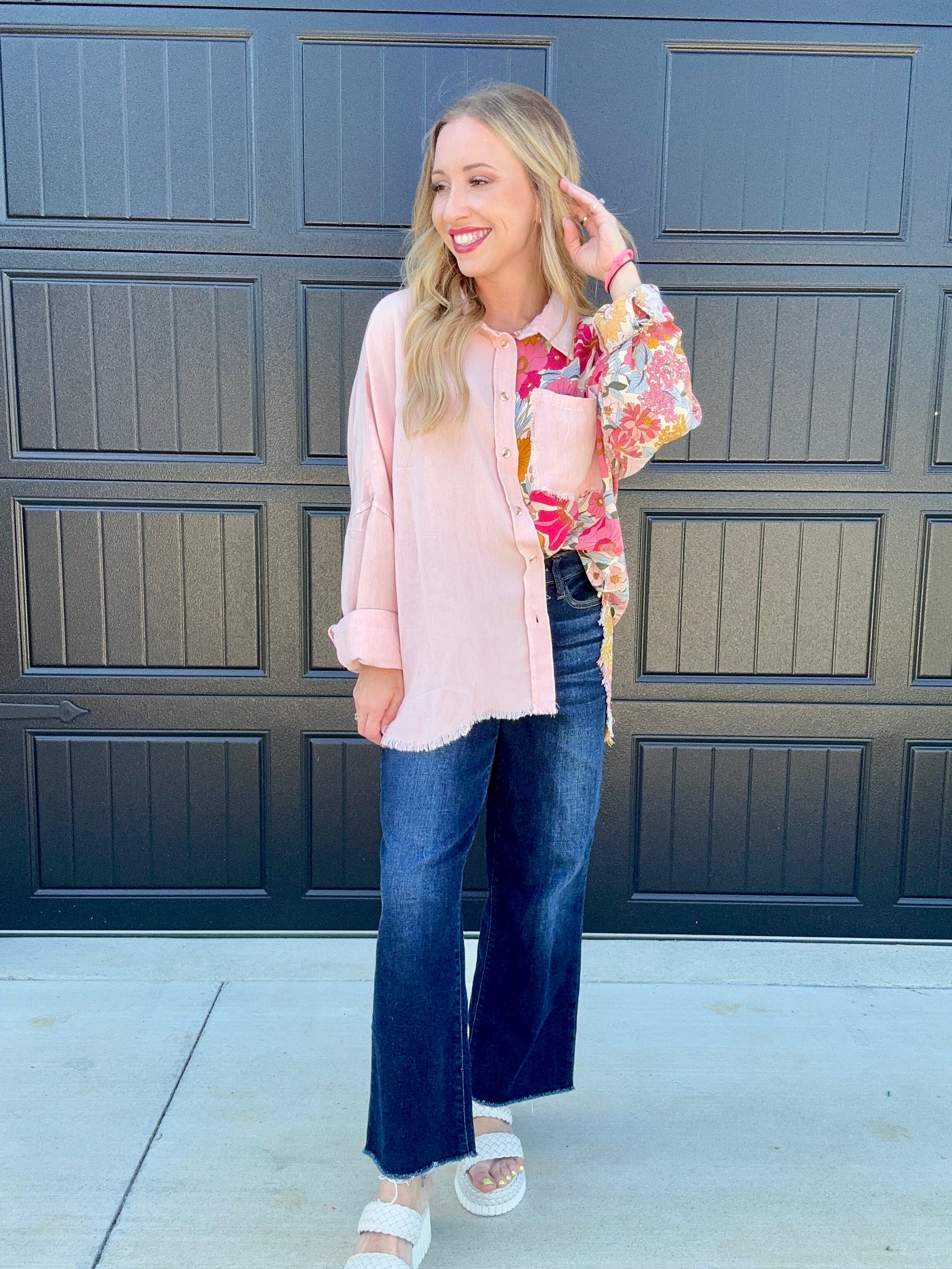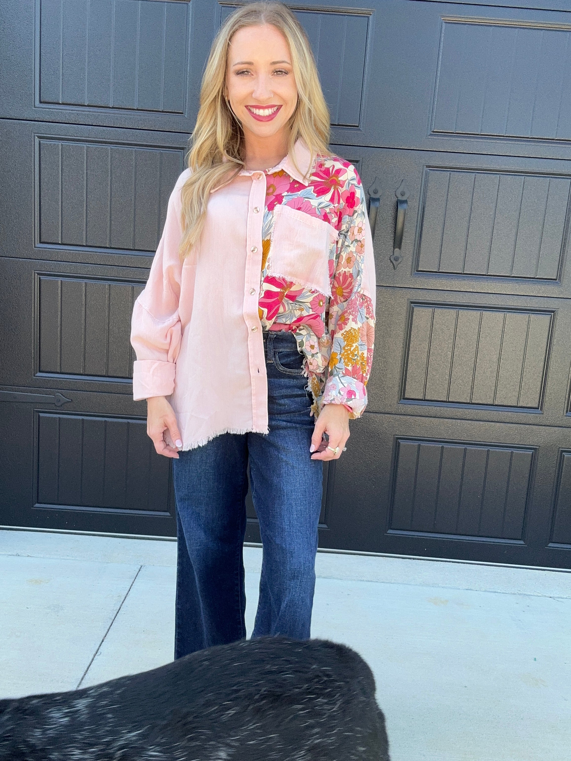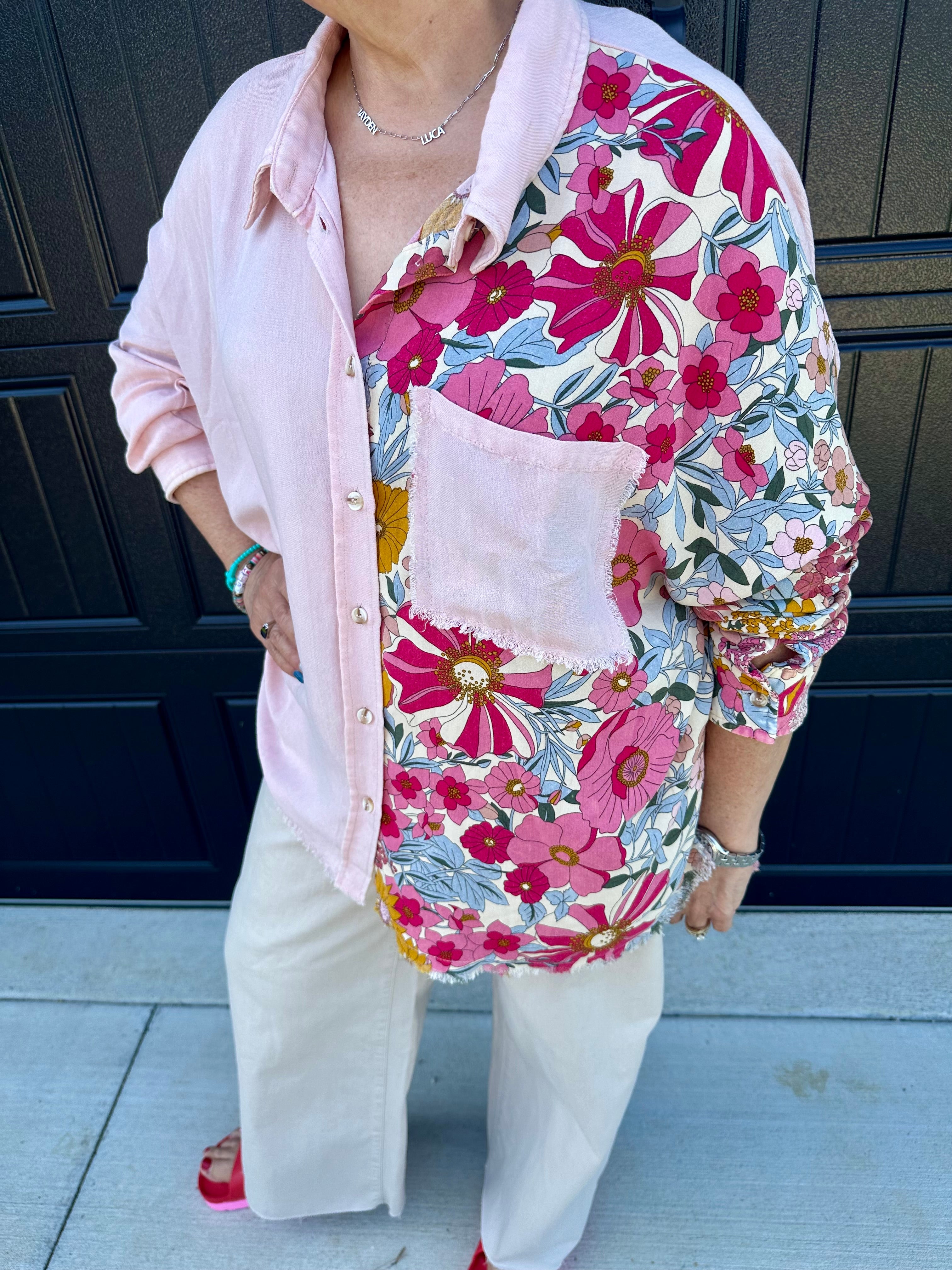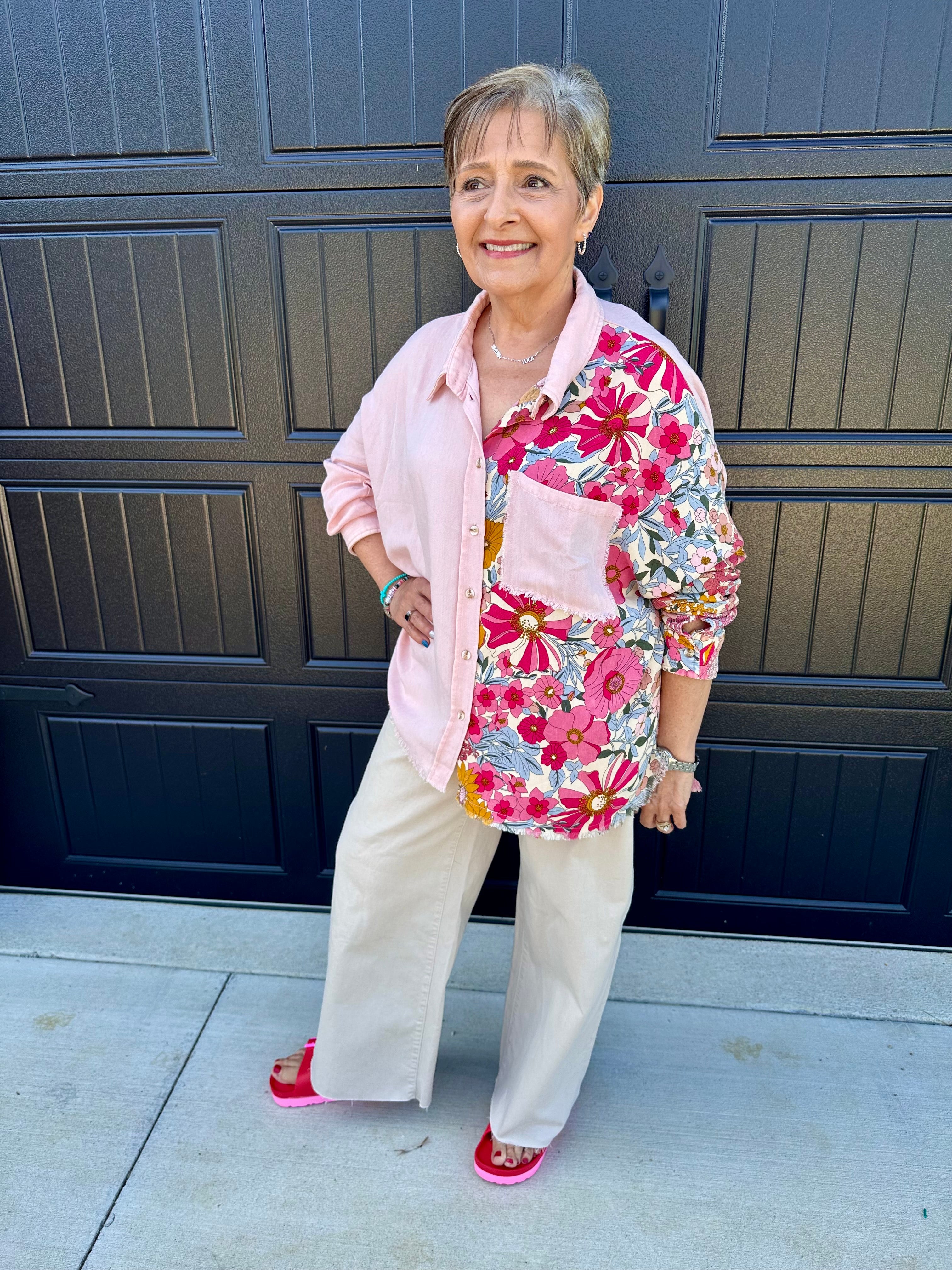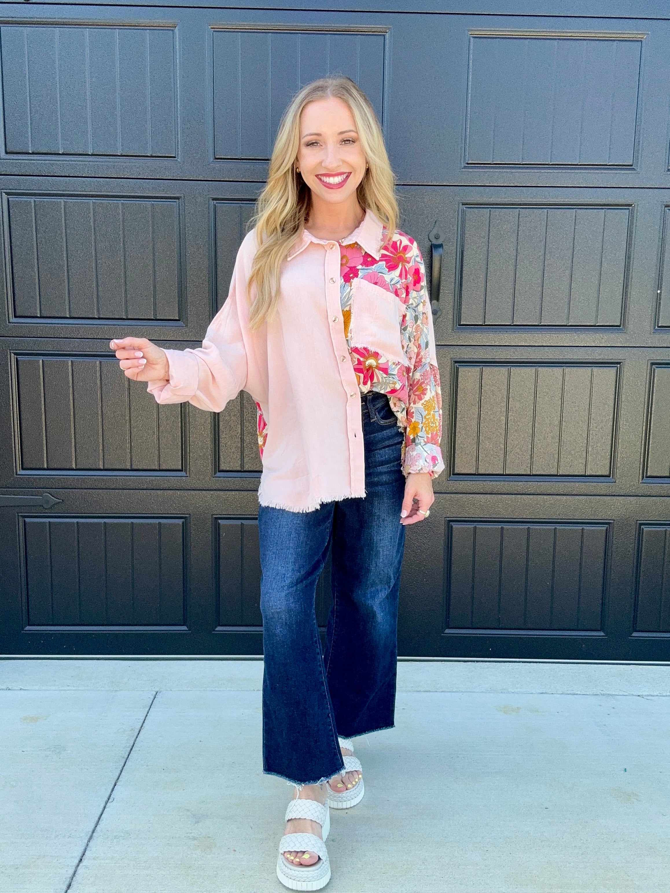 Blush Floral Button Top