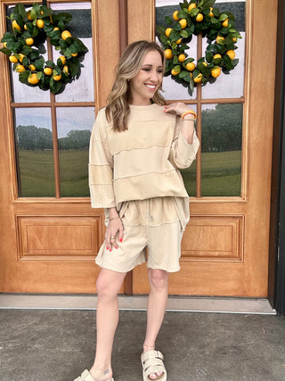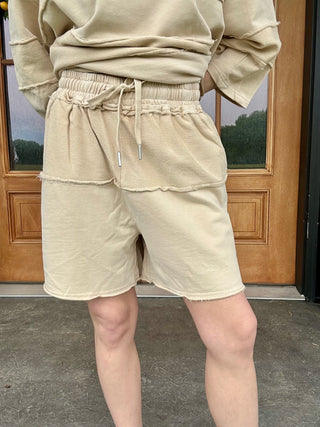 UPSIDE DOWN DETAILING MINERAL WASHED TERRY KNIT SHORT PANTS