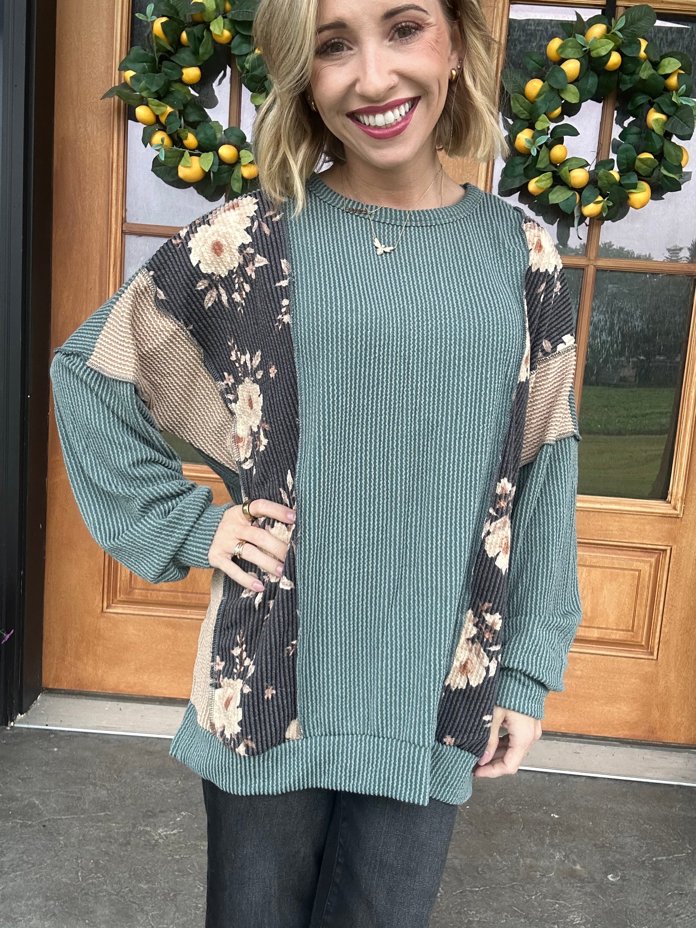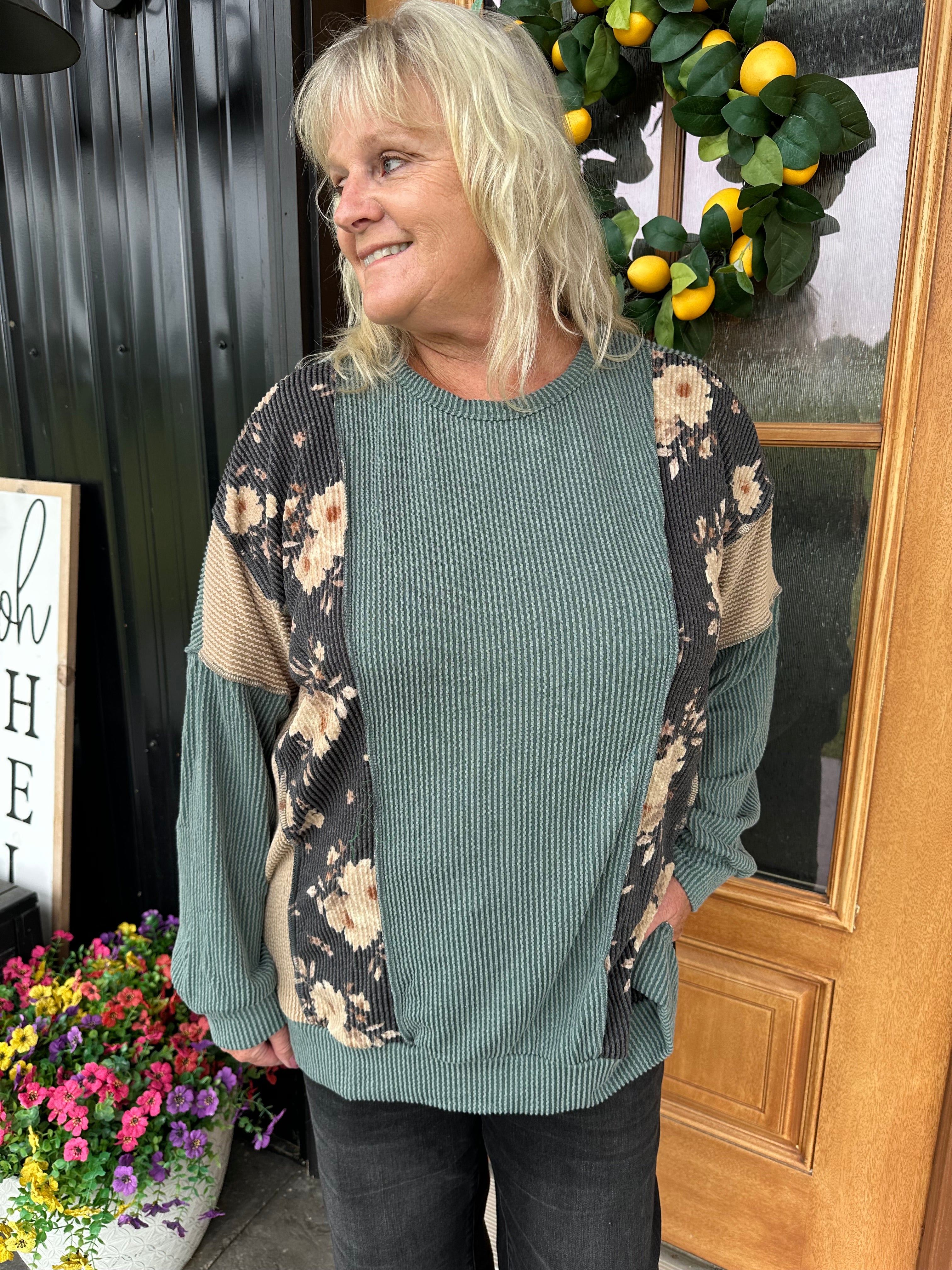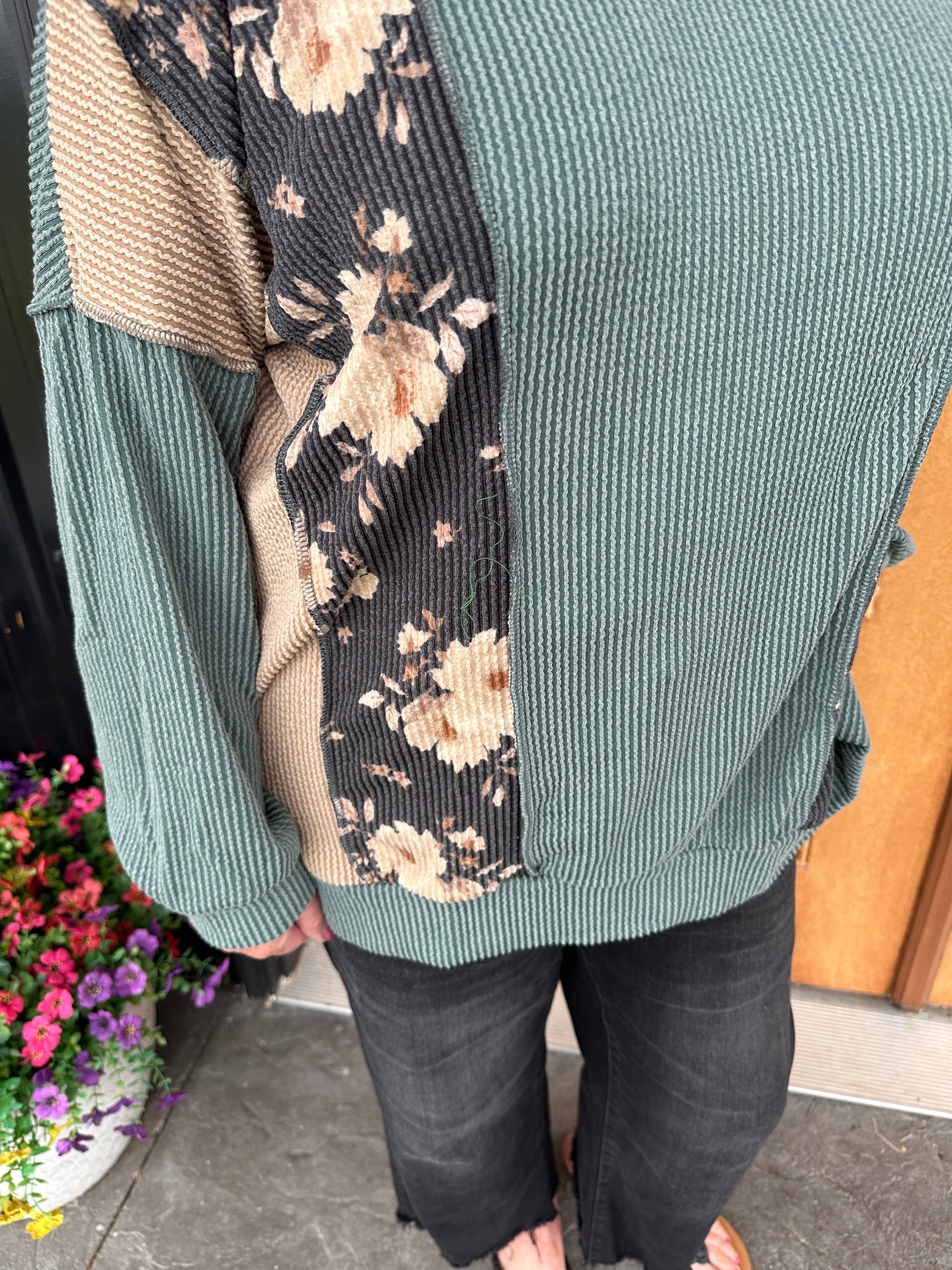 This top is a urban ribbed material top. SO cozy and soft and the material is amazing. Relaxed Fit Top and Fitting Oversized!